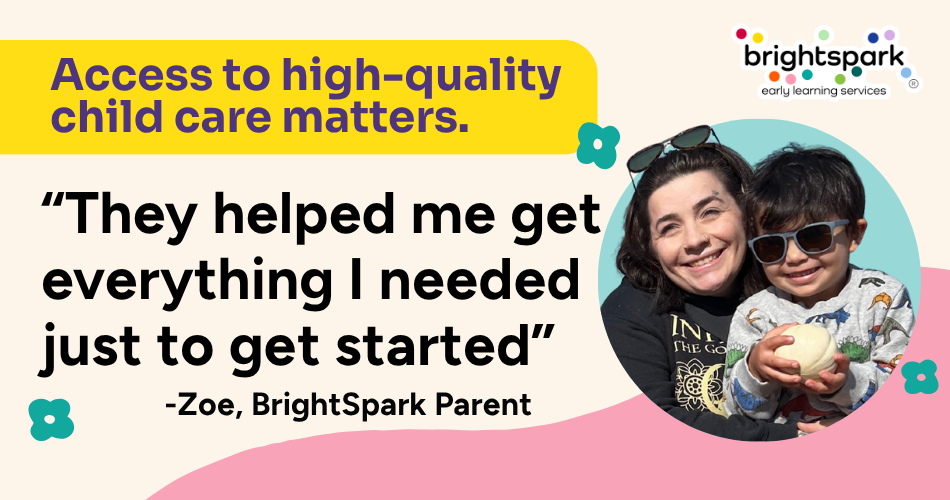 She wasn’t just looking for child care, she was looking for stability, guidance, and a way forward. Through BrightSpark, Zoe was connected to critical resources that supported her to take those first steps forward: